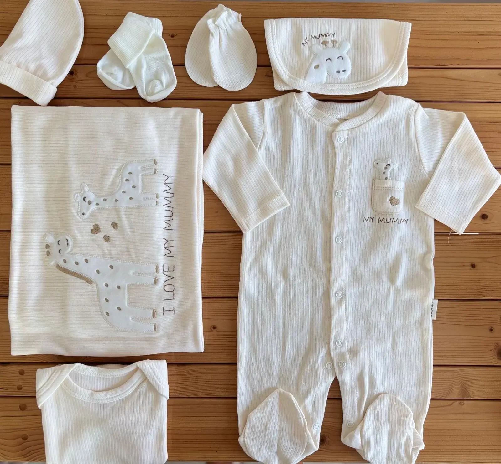 Bu 10’lu Yavrulu Zürafa Zıbın, esnek yapısı ve rahat kalıbıyla bebeğinizin hareketlerini kısıtlamaz, gün boyu konfor sağlar. Set içeriğinde yer alan tulum, üst zıbın, alt pantolon, eldiven, şapka ve önlük gibi parçalar hem hastane çıkışında hem de evde kullanmak için idealdir. Sevimli yavrulu zürafa deseni ise hem fotoğraf çekimlerinde hem günlük kullanımda ayrı bir şıklık kazandırır.