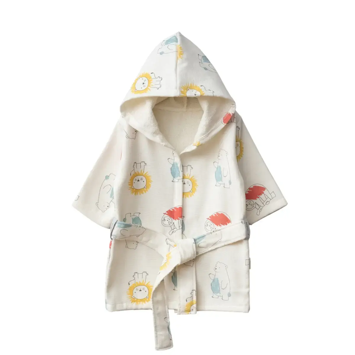 Aslan Desenli Bornoz, renkli ve sevimli hayvan figürleri ile banyo sonrası keyfi iki kat artıran, tamamen bebek cildine uygun yumuşacık dokuda bir üründür. Kapüşonlu yapısı sayesinde bebeğinizin başını hızla kurutur ve üşümeyi önler. Hafif, nefes alabilen kumaşı ile hem yaz hem kış kullanıma uygundur. Mandallı veya kemerli kullanım kolaylığı sunması da ebeveynlerin en sevdiği özelliklerdendir.