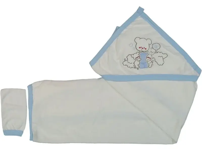 Ayı ve Kuzu Nakışlı Kapüşonlu Bebek Havlusu, banyo sonrası bebeğinizin hassas cildine zarar vermeden nazikçe kurulanmasını sağlar. %100 pamuk yapısı sayesinde yumuşacık dokulu ve yüksek su emiciliğine sahiptir. Ayı ve Kuzu Nakışlı Kapüşonlu Bebek Havlusu üzerindeki sevimli hayvan figürleri, mavi kenar biyeleri ile birlikte modern ve tatlı bir görünüm sunar. Kapüşon bölümü bebeğinizin başını sıcak tutarak üşümeyi önler. Hem evde hem hastanede kullanıma uygundur. Erkek bebekler için ideal olup, yeni doğan hediye setleri içerisinde tercih edilen pratik ve hijyenik bir üründür.