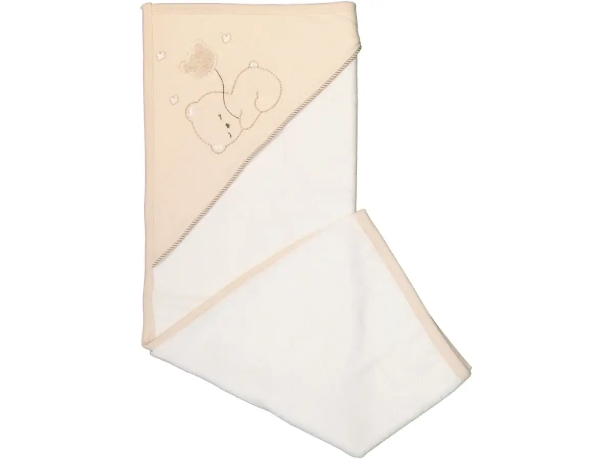 Balonlu Ayıcık Nakışlı Kapüşonlu Bebek Havlusu