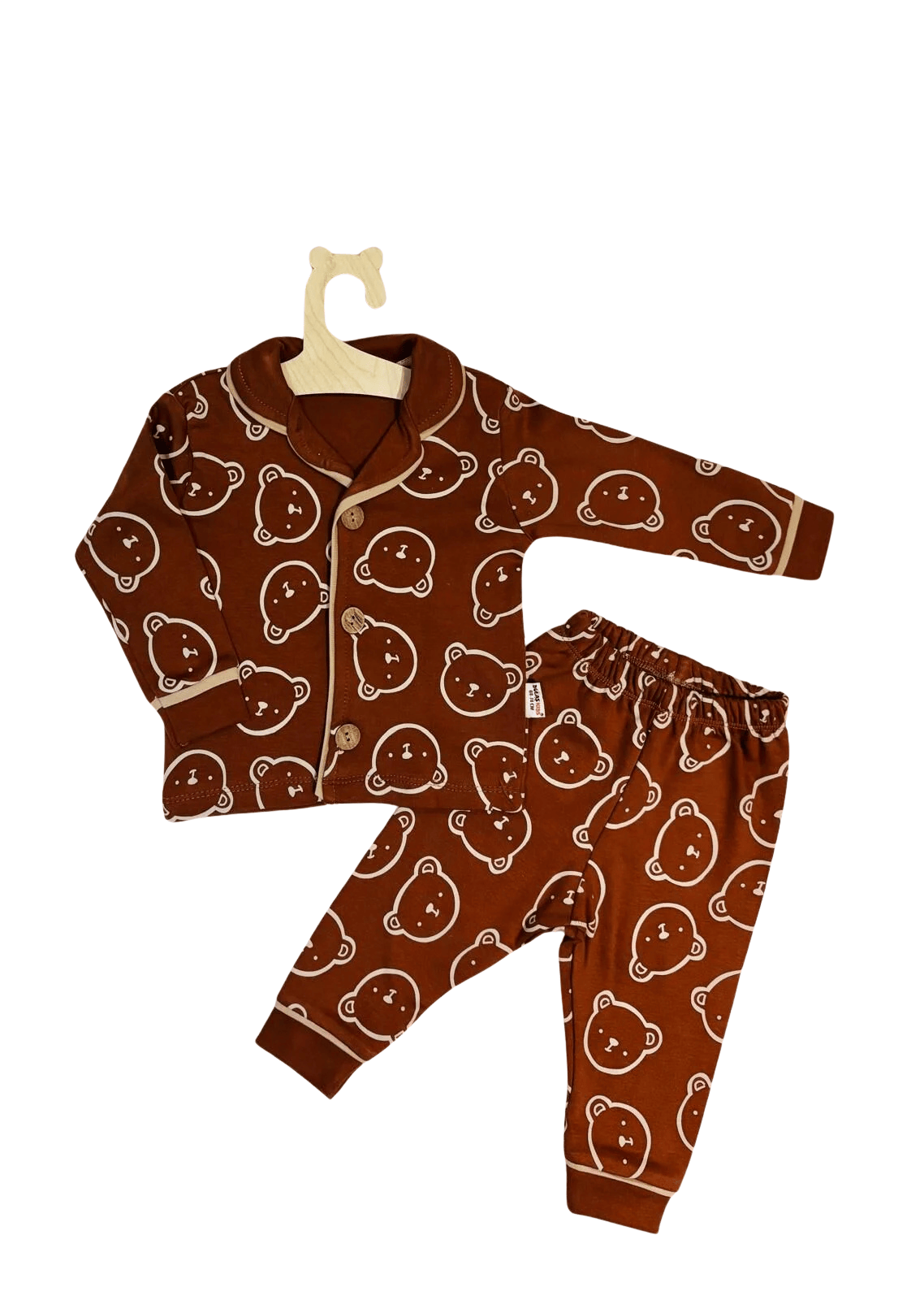 Büyük Ayıcık Desenli Pijama Takımı, tatlı ayıcık baskıları ve sıcak kahve tonlarıyla miniklere hem şirin bir stil hem de gün boyu rahat bir kullanım sunar. “Kumaşı terletir mi?”, “Bebeğimin cildini kaşındırır mı?”, “Baskılar zamanla silinir mi?” gibi sorulara kaliteli pamuk dokusuyla güven veren bir çözümdür.