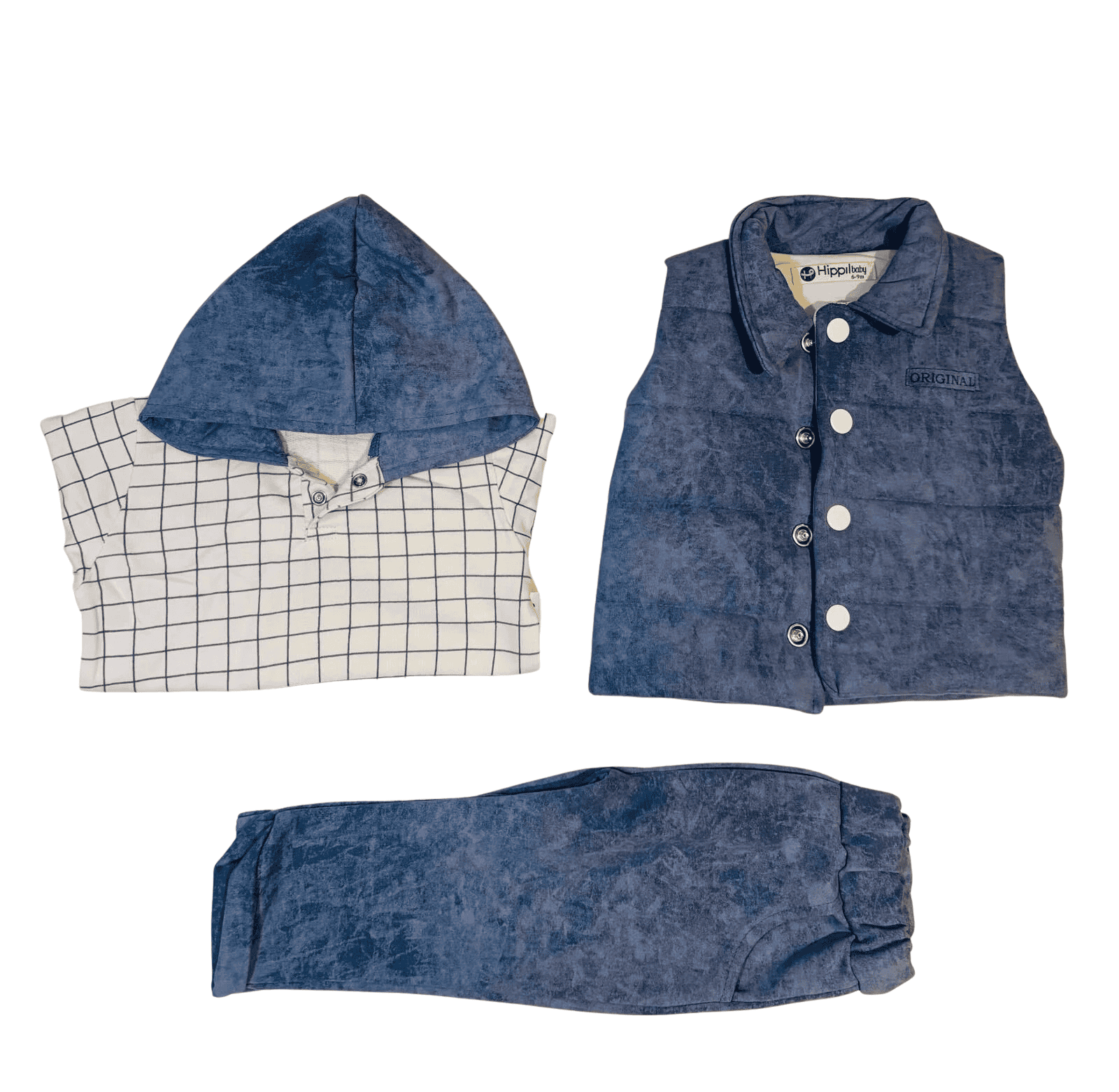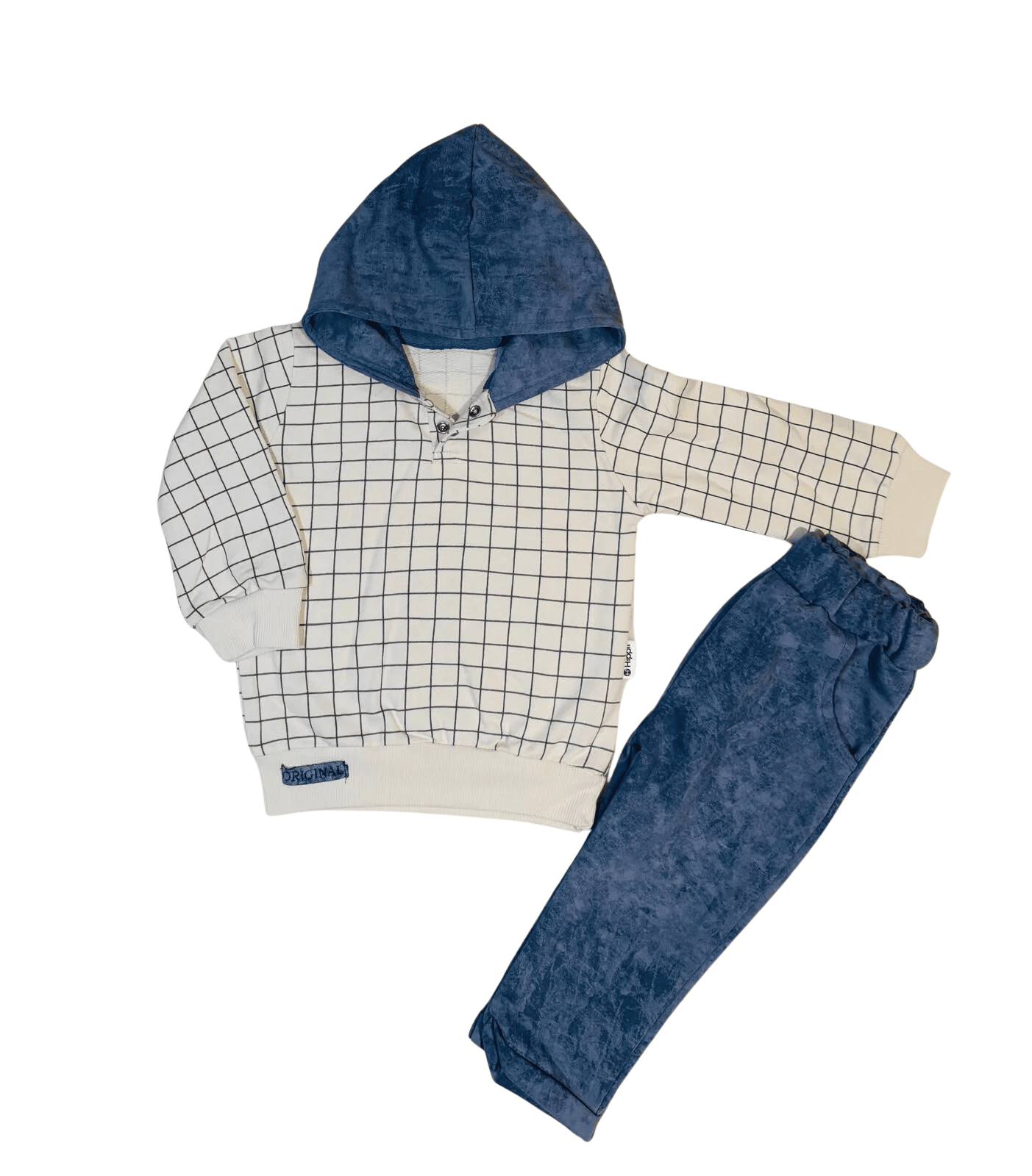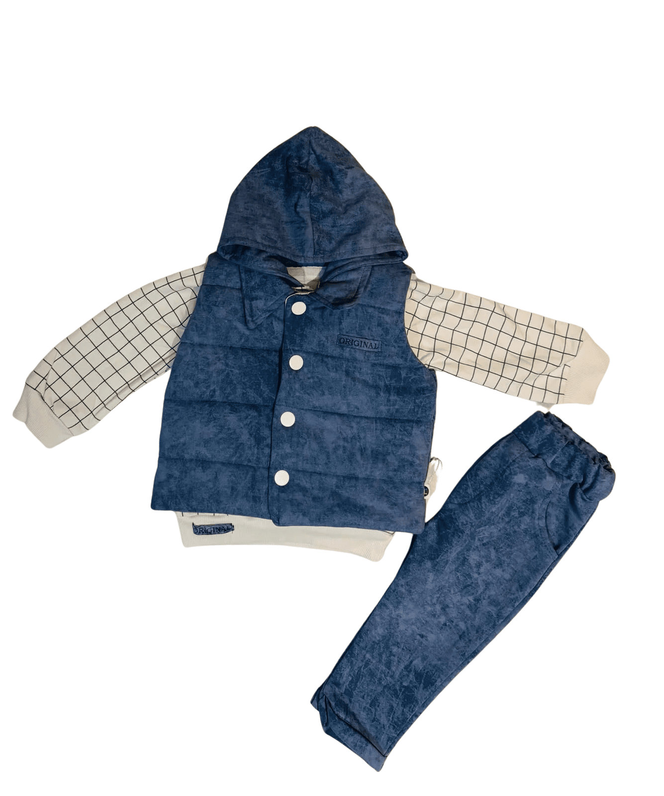Çizgili Kare Desenli Yelekli Takım, modern kare desenli üstü, kapüşonlu yapısı ve soft dokulu yeleğiyle minik beyefendilerin stilini tamamlayan özel bir settir. “Acaba üşütür mü?”, “Kumaşı sert mi?”, “Günlük kullanım için uygun mu?” gibi sorulara tam yanıt veren bu takım, hem rahatlığı hem de şıklığı aynı anda sunar.