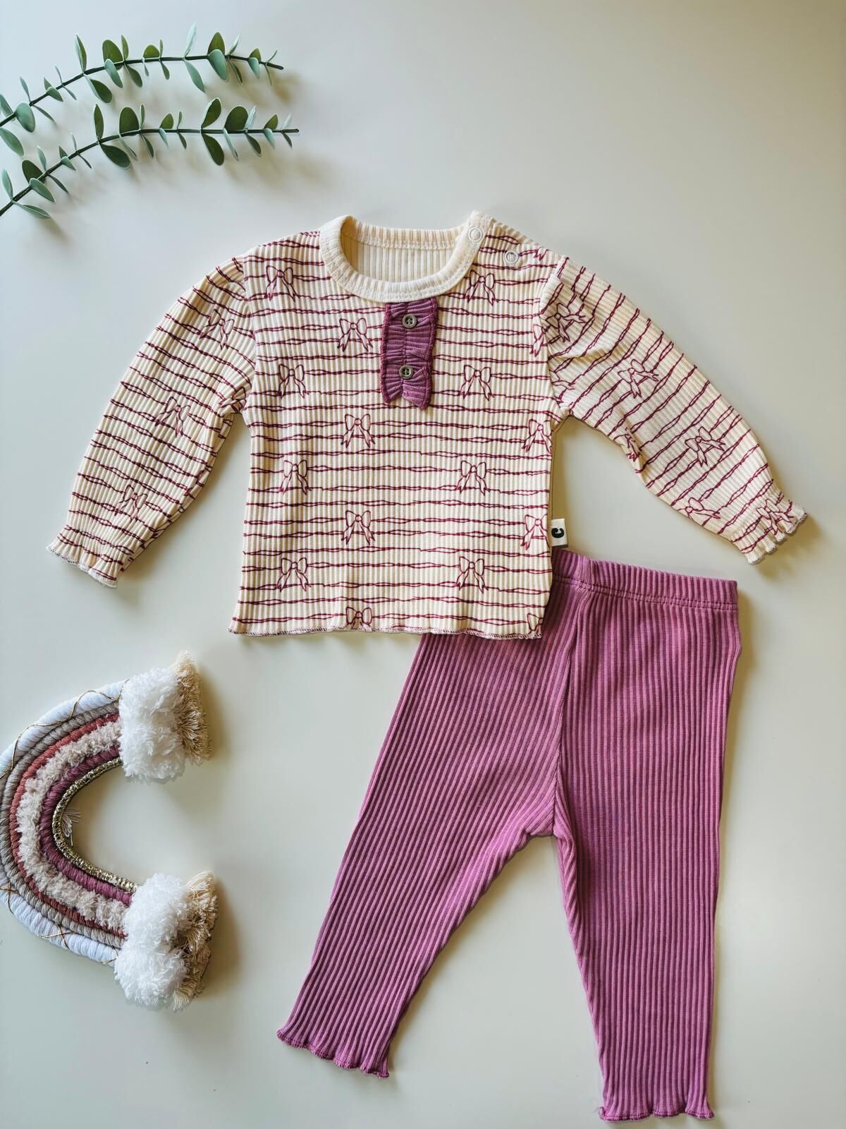 Düğmesi Detaylı 2’li Takım, modern çizgili desene sahip üst parçası ve esnek ribana altıyla hem şirin hem de kullanışlı bir kombin arayan aileler için ideal bir seçenektir. Annelerin sıkça sorduğu “Kumaşı yumuşak mı, düğmeler bebeği rahatsız eder mi, alt kısmı esnek mi?” gibi soruların cevabı: Hayır, çünkü pamuklu, nefes alan ve esnek yapısıyla bebeğin cildini tahriş etmeden gün boyu rahatlık sunar. Üstteki dekoratif düğme ve fiyonk detayları takıma zarif bir görünüm kazandırırken, kol uçlarındaki lastikli yapı hareketi kolaylaştırır. Alt parçanın esnek beli sayesinde bebeğin karnını sıkmaz, oyun ve yürüyüş sırasında maksimum konfor sağlar. Hem günlük kullanım hem de fotoğraf çekimleri için ideal olan Düğmesi Detaylı 2’li Takım, dayanıklı kumaşıyla uzun süre formunu korur.