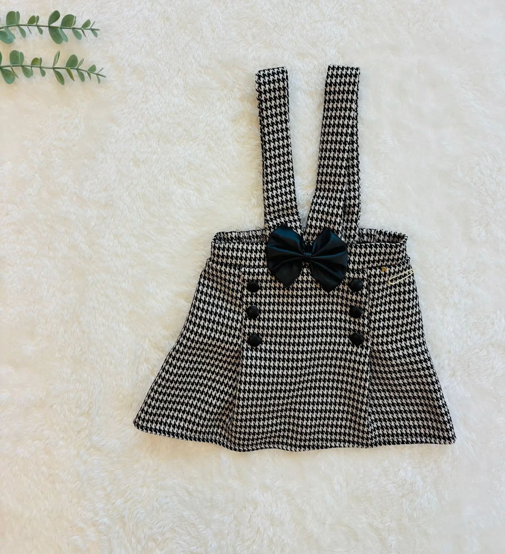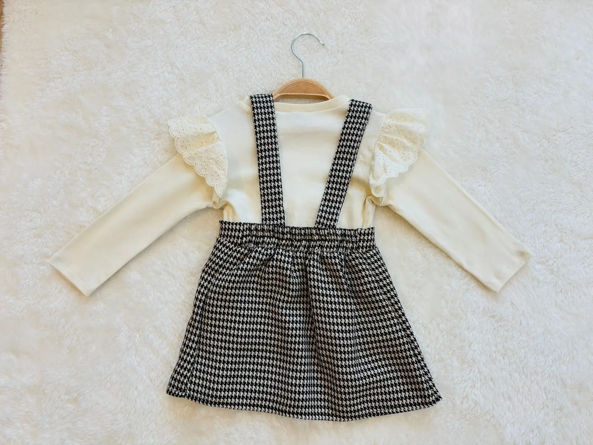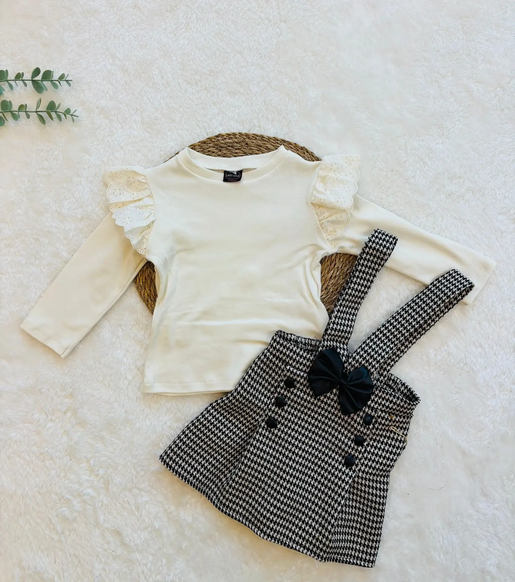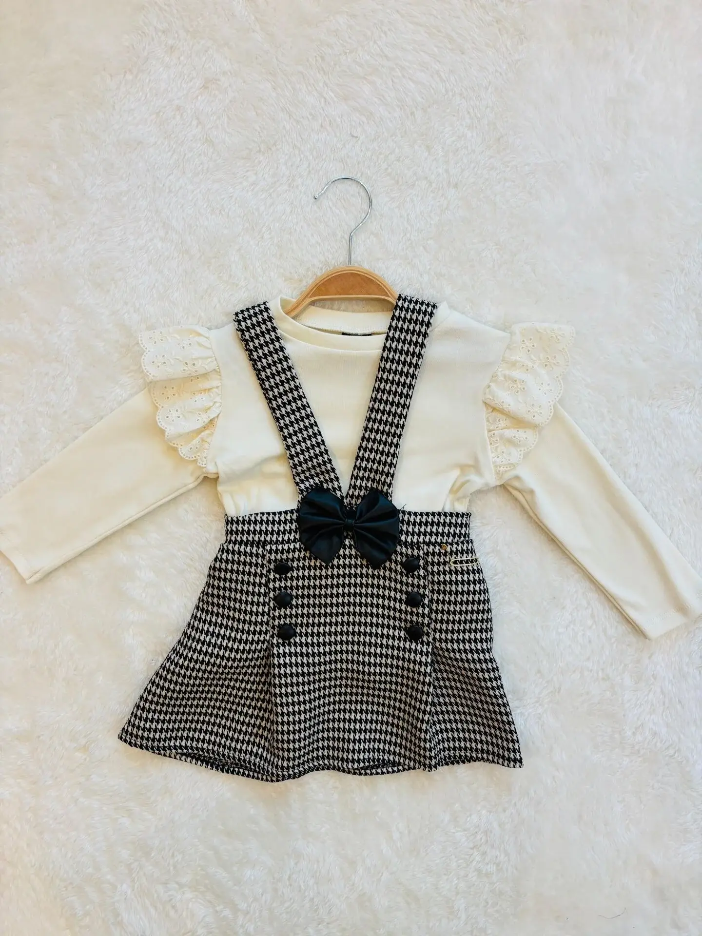 Ekose Askılı Kız Çocuk Elbise Takımı