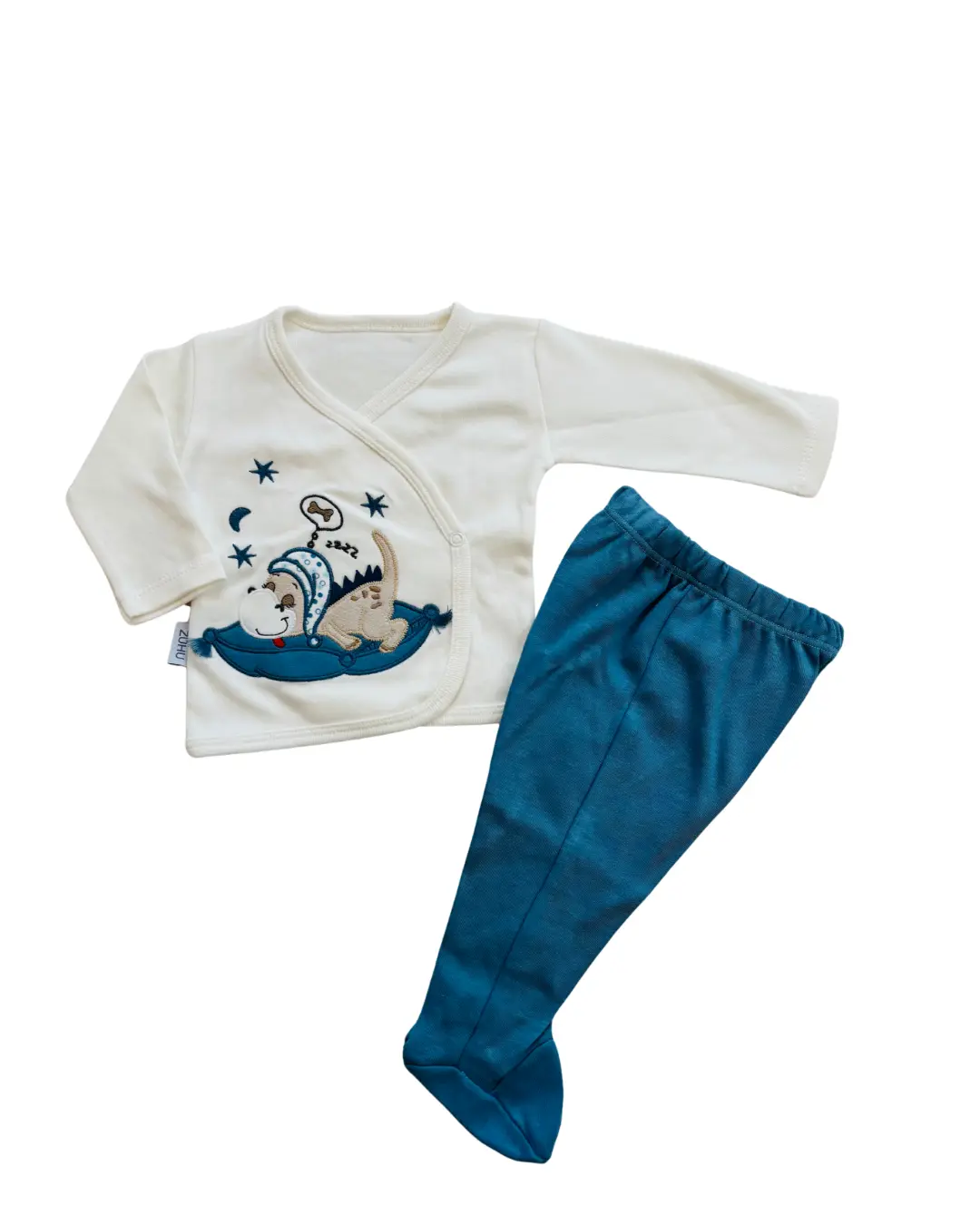 Erkek Bebek Dinazor Desenli 5’li Hastane Çıkışı Seti