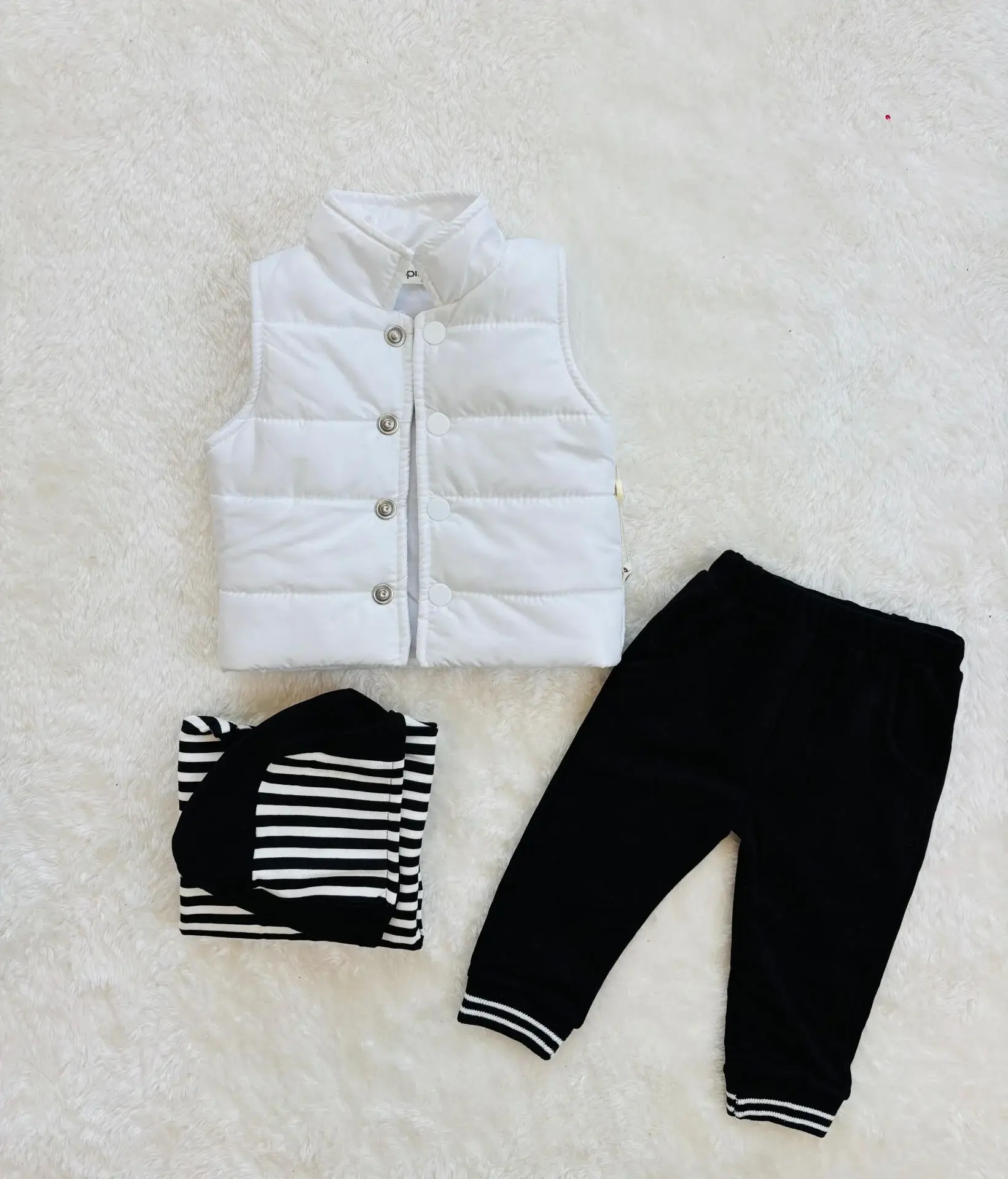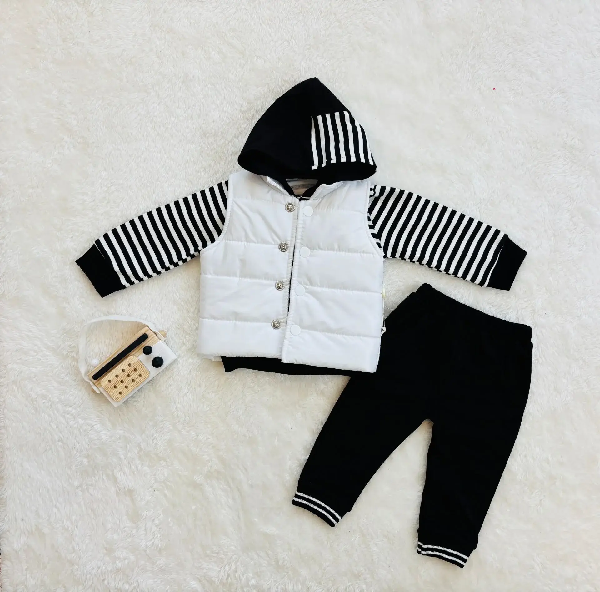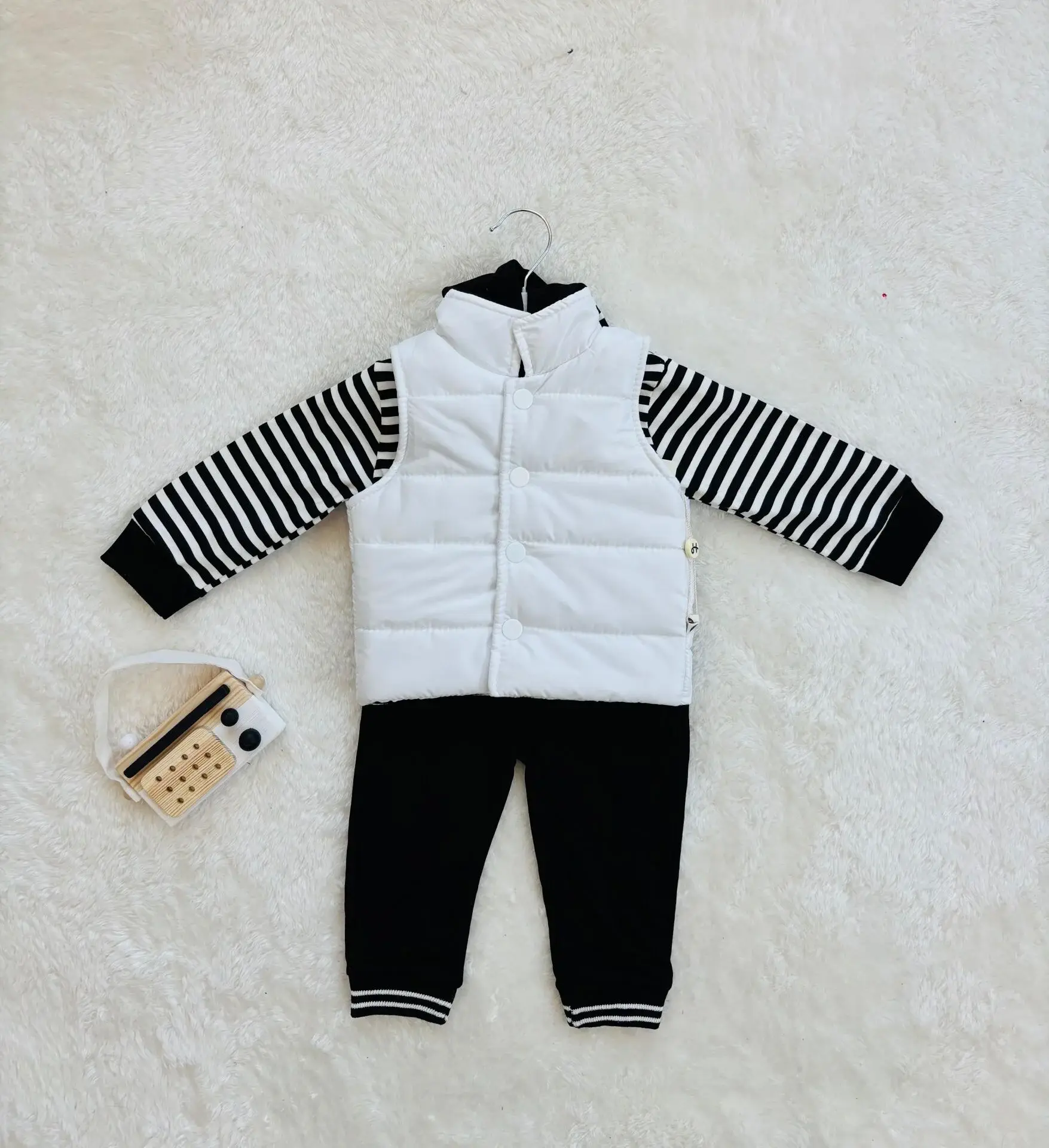 Erkek Çocuk Şerit Detaylı Kapüşonlu Şişme Yelekli 3’lü Takım