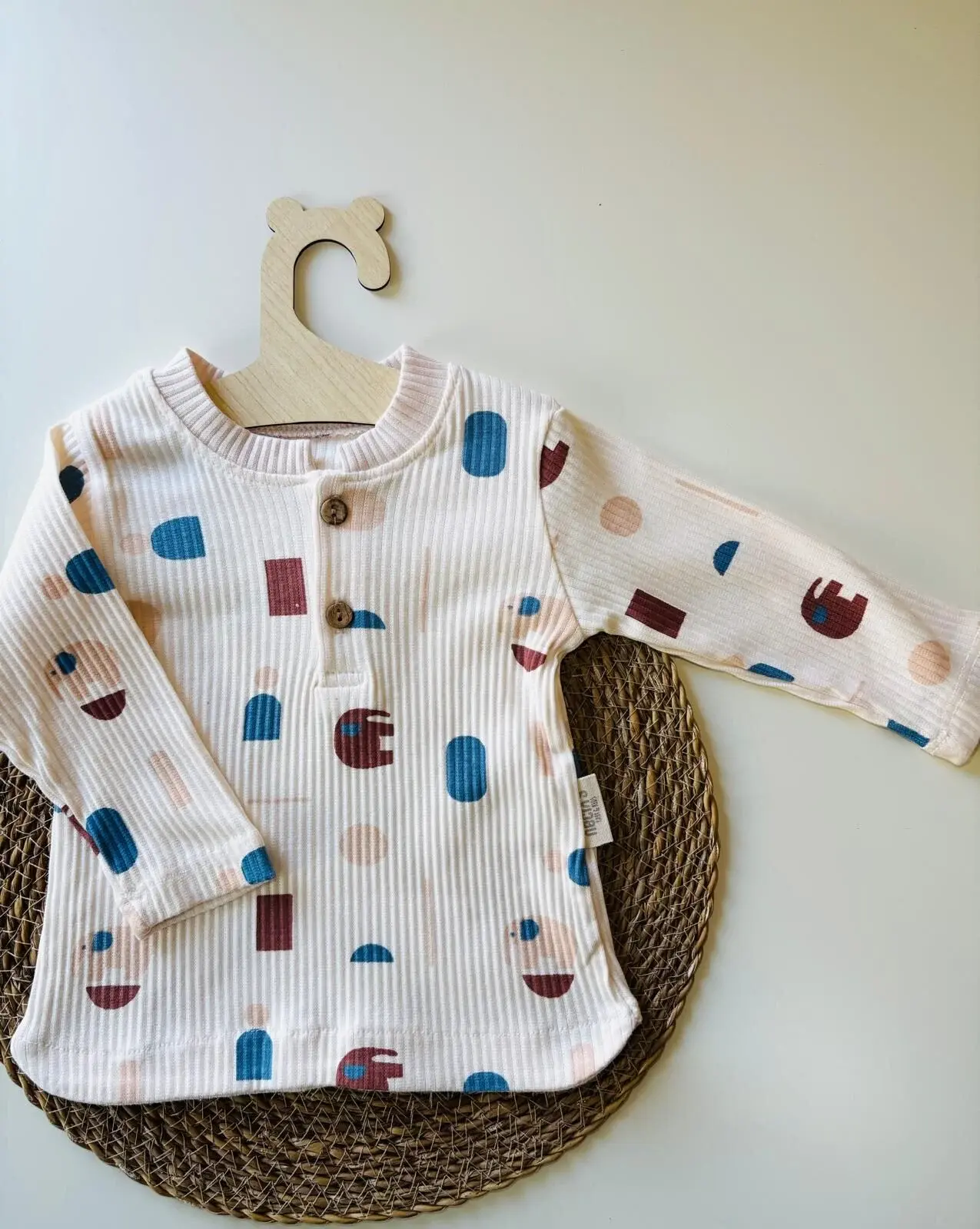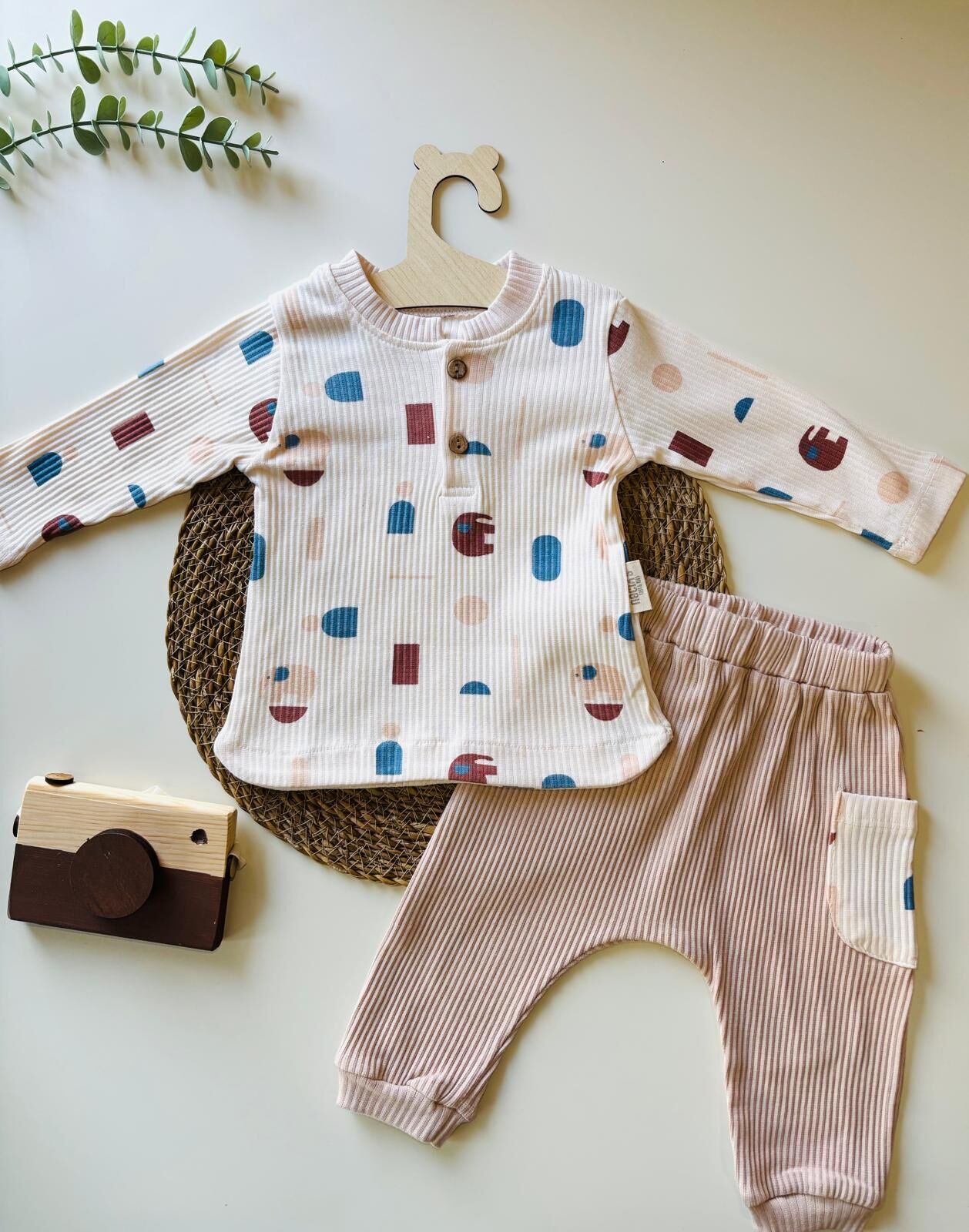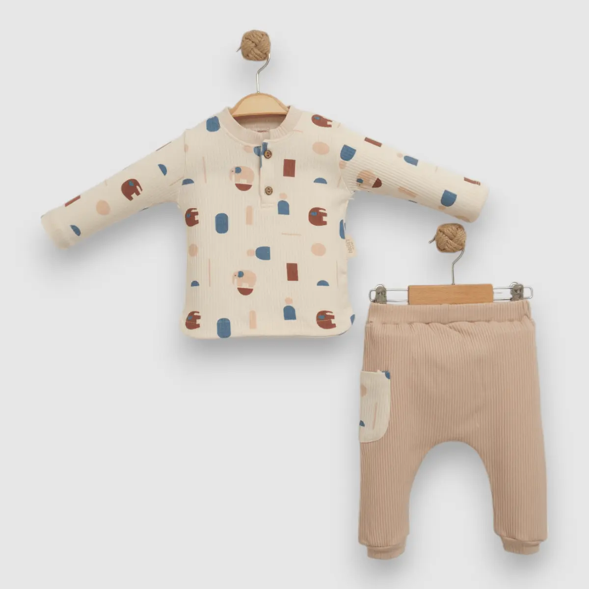 Fil Manşetli 2’li Takım, modern geometrik desenli üst parçası ve yumuşacık ribana kumaştan üretilmiş altıyla hem şıklığı hem de rahatlığı bir araya getiriyor. Fil Manşetli 2'Li Takım Annelerin sıkça merak ettiği “Kumaş esnek mi, terletir mi, bebeğimin hareketlerini kısıtlar mı?” gibi soruların cevabı: Hayır, çünkü Fil Manşetli 2’li Takım nefes alan ve esnek dokusuyla gün boyu konfor sağlar. Alt parçadaki mini fil desenli manşet detayı takımın en şirin noktalarından biridir. Fil Manşetli 2'Li Takım Bel kısmının lastikli yapısı bebeğe rahatlık sunarken, üstteki düğme detayları kolay giydirme imkânı sağlar. Hem günlük kullanım hem de misafirlikler için ideal olan Fil Manşetli 2’li Takım, zarif renk tonları ve modern çizgileriyle ebeveynlerin güvenle tercih edeceği bir tasarımdır.