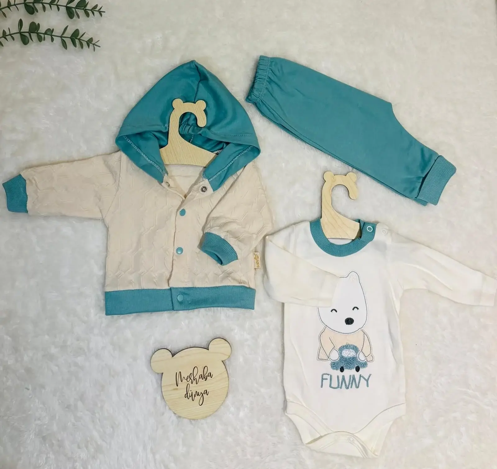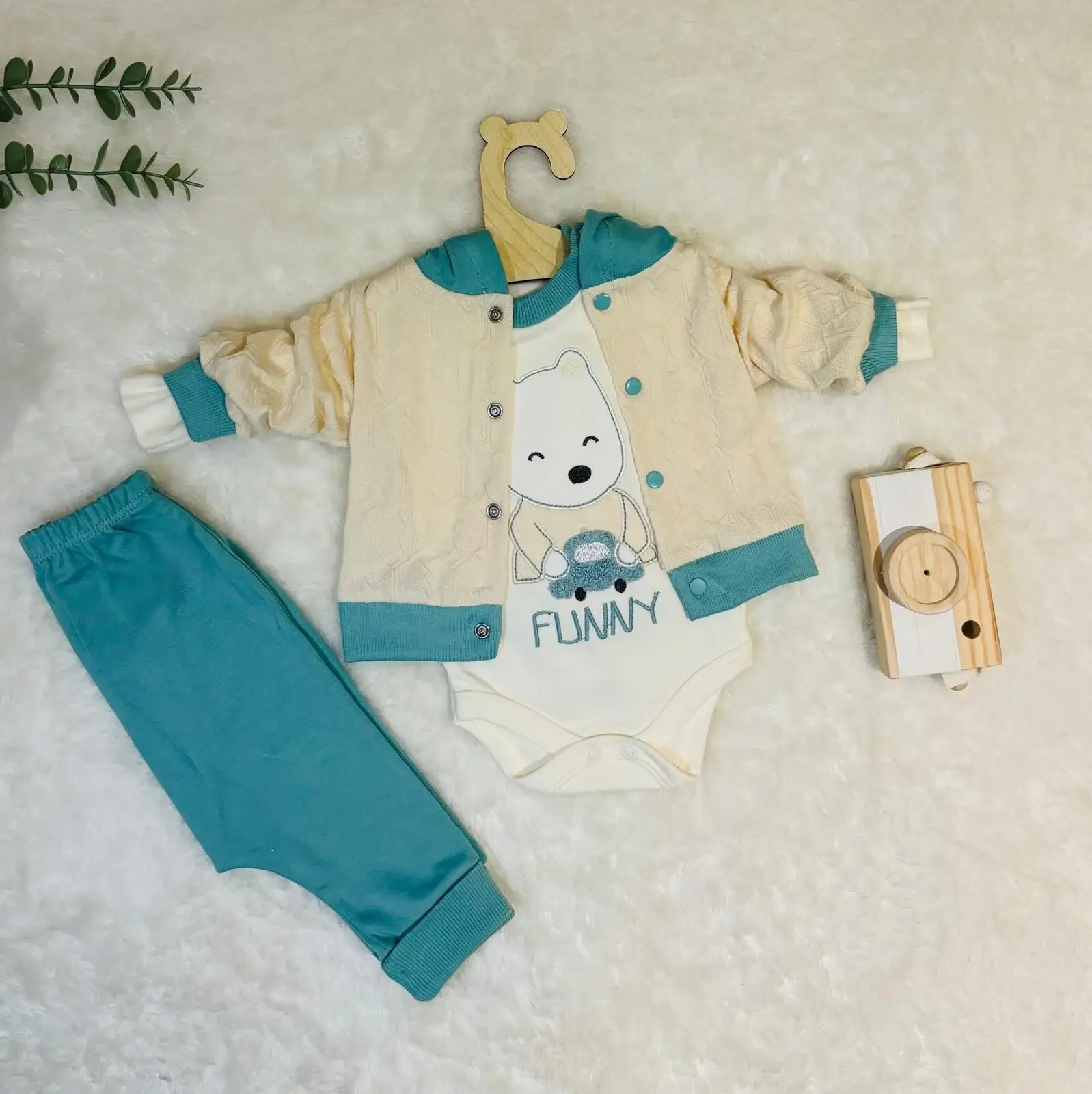 Funny 3’Lü Kapşonlu Takım – Miniklere Eğlenceli ve Yumuşak Dokunuşlar