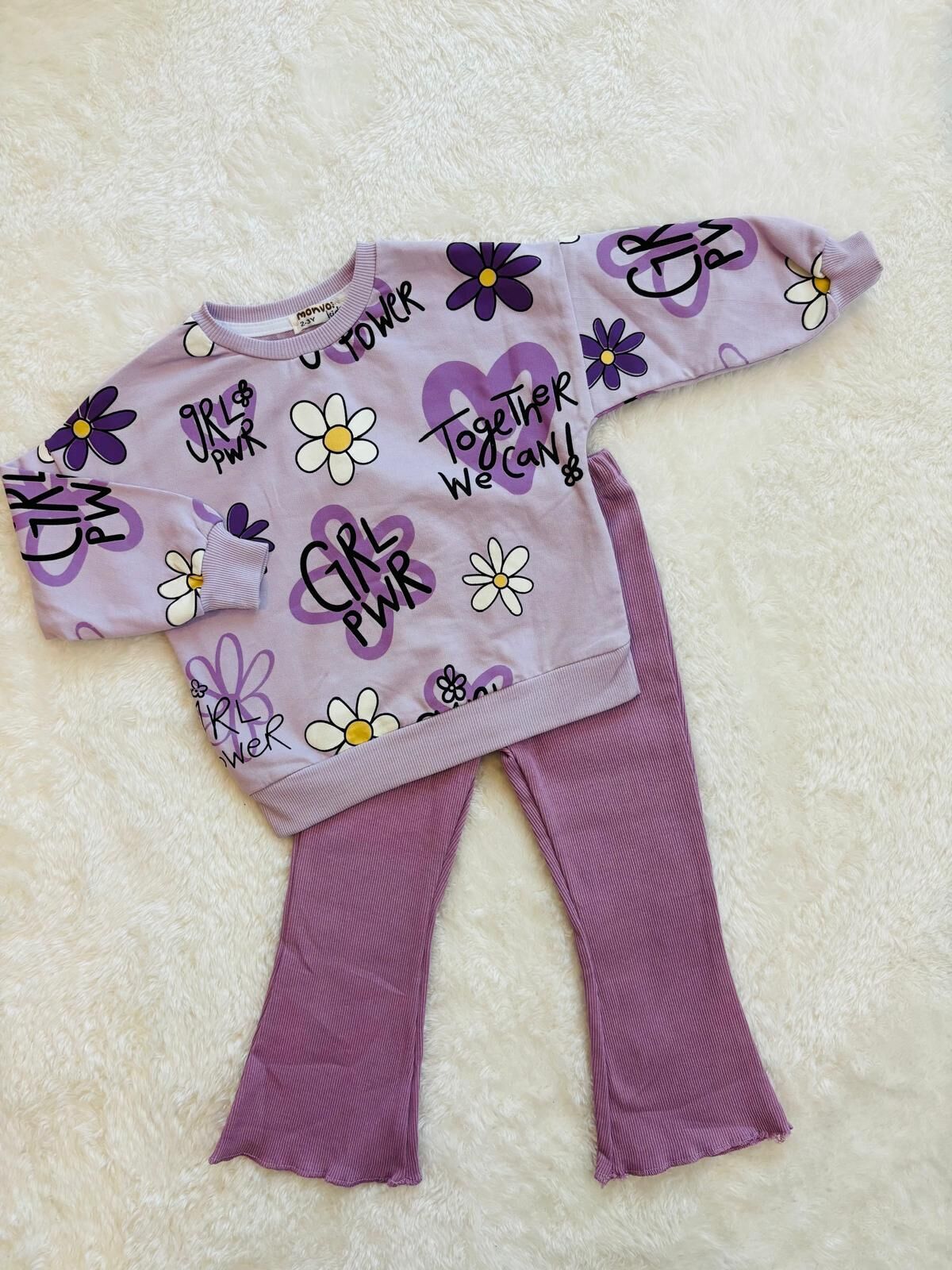Girl Power Baskılı Kız Çocuk 2’li Takım, enerjik ve modern tasarımı ile minik kızların tarzını yansıtıyor. Üst kısmındaki çiçek desenleri ve “Girl Pwr – Together We Can!” slogan baskıları özgüven teması ile dikkat çekerken, esnek kumaşlı ispanyol paça pantolon rahat hareket imkânı sunar. Girl Power Baskılı Kız Çocuk 2’li Takım pamuklu yapısı sayesinde cilt dostudur ve oyun, okul, dışarı kullanımlarına uygundur. Esnek bel yapısı bebeğinizin vücuduna uyum sağlar, şık görünümü ile hem günlük hem de özel gün kombinlerine rahatça eklenebilir.