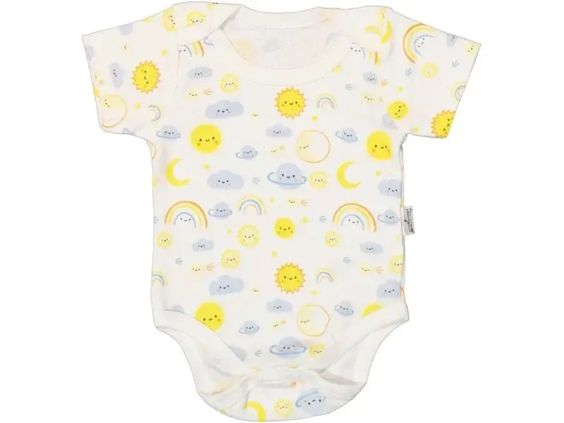 Gökyüzü Desenli Yarım Kol Çıtçıtlı Bebek Body – 1-9 Ay – %100 Pamuk