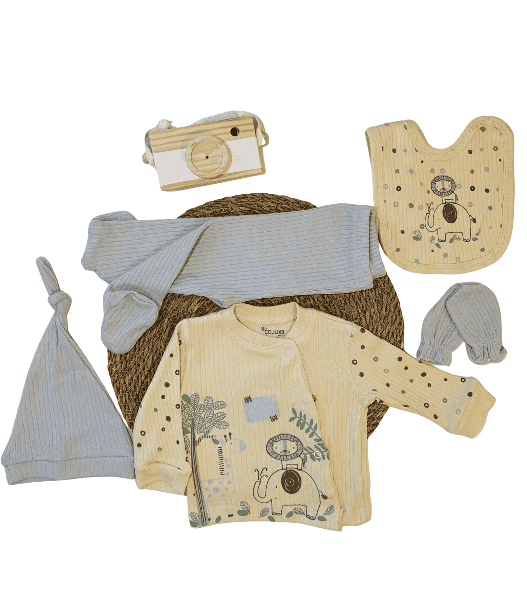 Hayvan Baskılı 5’Li Set, sevimli hayvan figürleri ve yumuşak pastel tonlarıyla bebeğinizin gardırobuna hem eğlence hem de rahatlık katar. %100 pamuklu kumaş yapısı sayesinde bebeğinizin hassas cildine uyum sağlar ve terletme yapmaz. Annelerin en çok merak ettiği “Baskılar tahriş eder mi?” sorusuna cevaben; Hayvan Baskılı 5’Li Set’in tüm baskıları su bazlı ve zararsızdır. Set içinde üst, patikli alt, önlük, eldiven ve düğümlü şapka bulunur. Günlük kullanımda kolayca giydirilebilmesi için yan açılı düğme tasarımı tercih edilmiştir. Hem sağlıklı hem de modern bir seçenek arayan aileler için Hayvan Baskılı 5’Li Set ideal bir tercihtir.