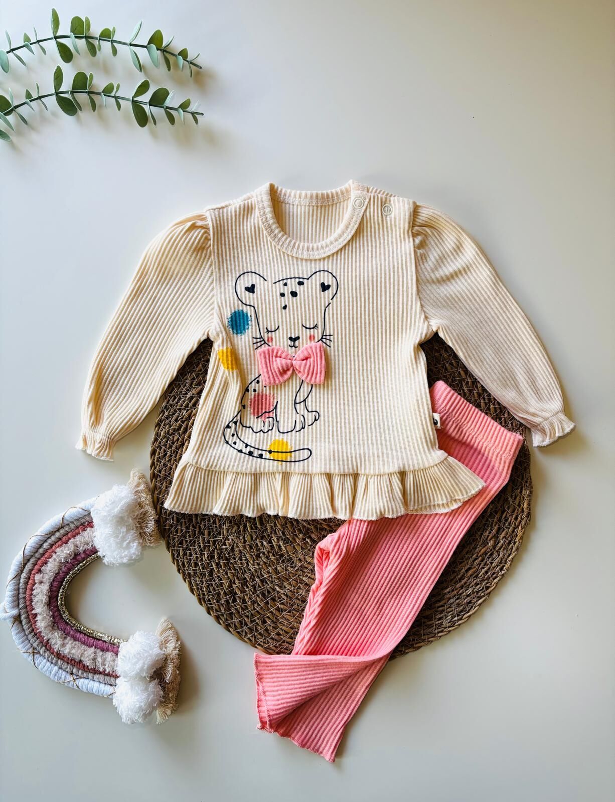 Kedili Fiyonklu Kız Takım – Şirin Tasarım ve Gün Boyu Rahatlık