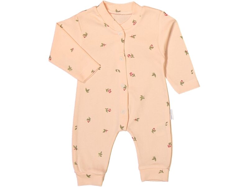 Lale Manşetli Tulum, bebeğinizin hassas cildine uyumlu yumuşacık pamuk dokusu sayesinde gün boyu rahatlık sunan zarif bir tasarımdır. Soft pembe rengi ve üzerindeki minik lale desenleri ile hem günlük kullanımda hem de fotoğraflarda şirin bir görünüm sağlar. Bu Lale Manşetli Tulum, annelerin sıkça sorduğu “kumaşı terletir mi?”, “giydirirken zorlanır mıyım?” gibi sorulara net bir şekilde cevap verir: Nefes alan yapısı terletmez ve önden çıtçıtlı tasarımı sayesinde giydirme işlemi çok kolaydır.