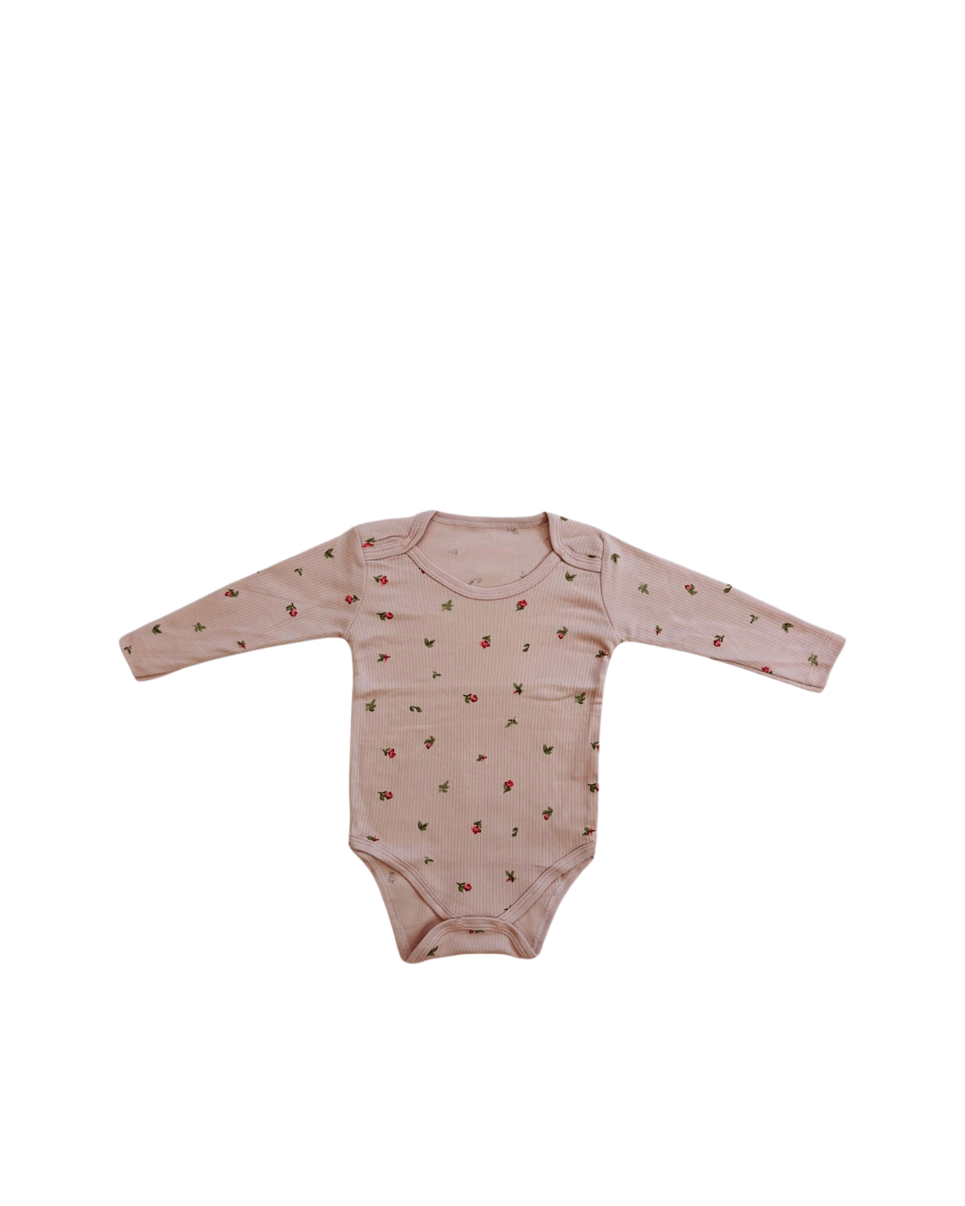 Pembe Çiçek Desenli Uzun Kollu Bebek Badi