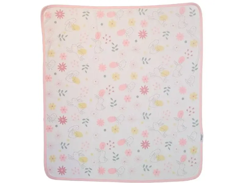 Tavşan ve Çiçek Desenli Penye Bebek Battaniyesi