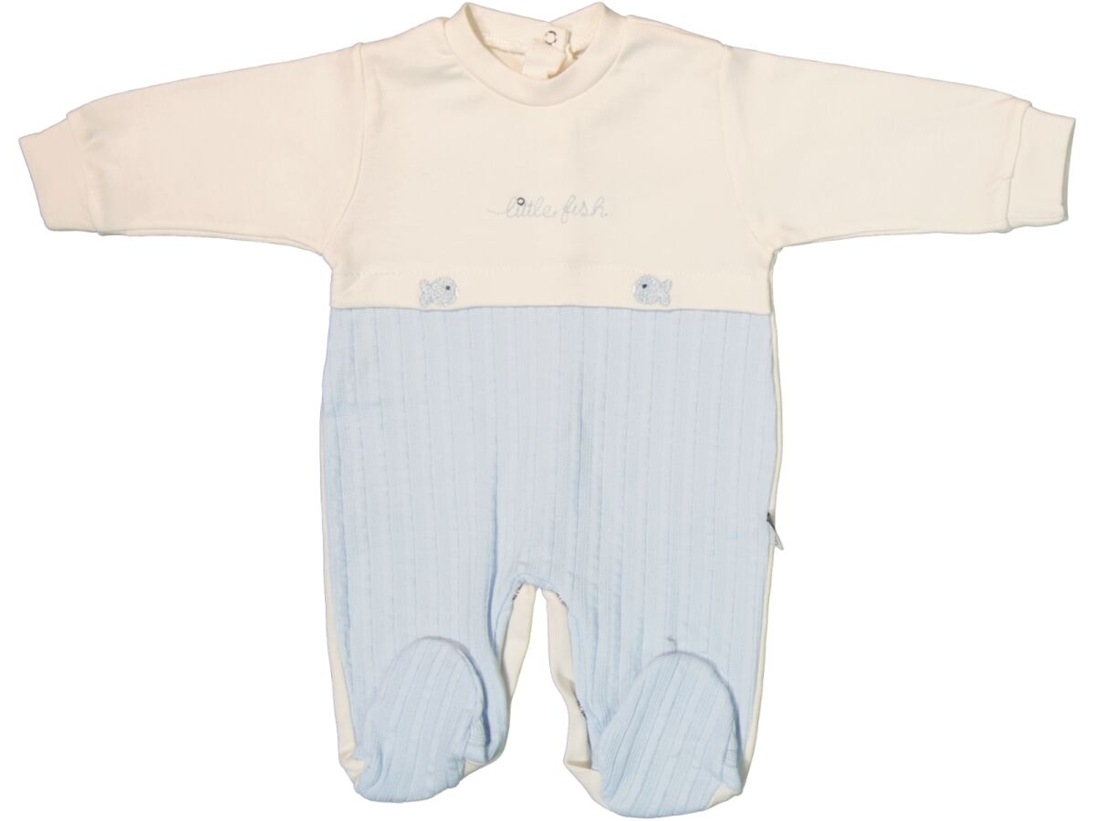 Tonton Balıklı Tulum, miniklerin gün boyu rahat etmesi için özel olarak tasarlanmış, hem şık hem de kullanışlı bir bebek tulumudur. Üst kısmındaki zarif “Little Fish” nakışı ve küçük balık detayları ile görsel olarak sade ama sevimli bir stile sahiptir. Tonton Balıklı Tulum’un alt kısmı tamamen patikli yapıdadır, bu sayede bebeğinizin ayakları üşümez ve ek çorap ihtiyacı ortadan kalkar.